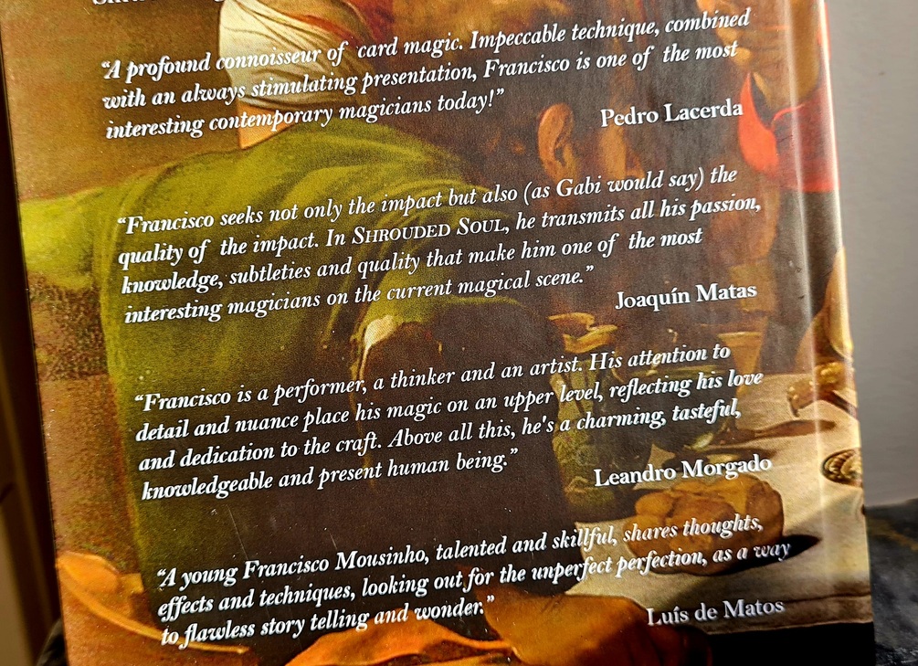 In his most recent book, “Shrouded Soul”, you will learn how truthful writing can improve the emotional resonance of your performances, how authenticity can become a weapon for magicians and how we can use our imperfect human traits to our advantage: to conceal techniques, to create new ones and to change the frame of our art for ourselves and the audience, along with the symbolism we carry with us on stage. Francisco Mousinho theorizes about mistakes and imperfection and how we can turn them into something useful and creative. Additionally, you will learn 3 full routines from Francisco´s repertoire, that enhance and illustrates the fundamental elements of the book.